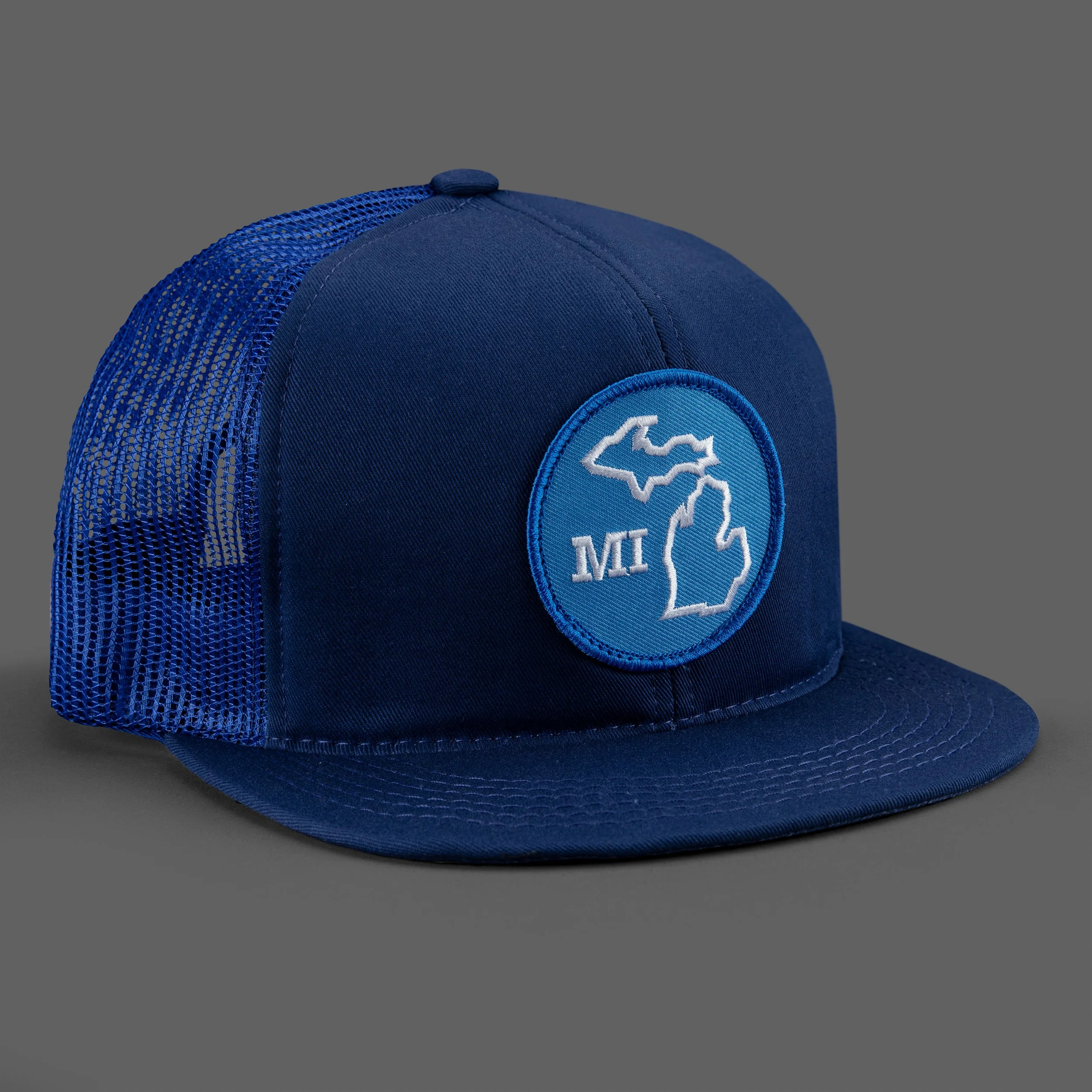 Our action cap featuring our “Thick Lined Michigan” design from our “Michigan Torso Cover.” Say “Yes” to Michigan. Our home state.