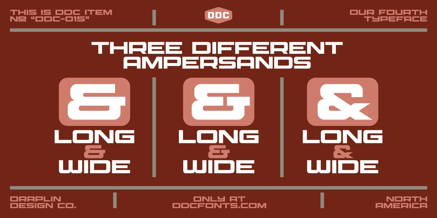 Making a font is a blast. It actually goes pretty dang fast, which is surprising. That A-Z design process can whip by if you’ve got yer moves down. But remember, this is the kind of stuff I had only heard from type designer colleagues. They’d shroud the rest in mystery. When I made DDC Hardware, I simply would crack open my Adobe Illustrator file and hunt and peck the characters I needed piece by piece, then crudely kern them into the word I needed. Dumb, right? Imagine how the world took off with that first draft TTF file I got to install? That’s fine and all. It’s the avalanche of everything else that goes into developing a font, finding folks who’ll do it right, have the vision to properly protect it, and, keep the licensing stuff in check. Quite the education I’ve had, and I am thankful to be partnered up with Stuart Sandler on this typographic adventure with DDC Fonts. We’ve got so much stuff on deck! Excited to launch new goodies!
